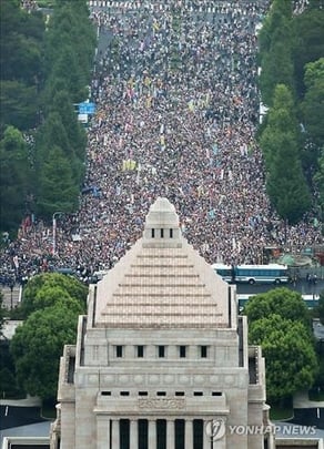 일본 정국에 긴장이 감돌고 있다. 아베 신조(安倍晋三) 일본 총리와 집권 자민당이 집단자위권 행사를 포함한 안보 관련 법안을 다음주 중 강행 처리할 것으로 예상되면서다. 민주당과 유신당 등 야당들은 물론 지식인, 학생, 시민사회단체들이 대대적인 저지 시위를 계획하고 있다. 양측 모두 절대 밀릴 수 없다는 각오여서 벌써부터 격렬한 충돌이 예상된다.