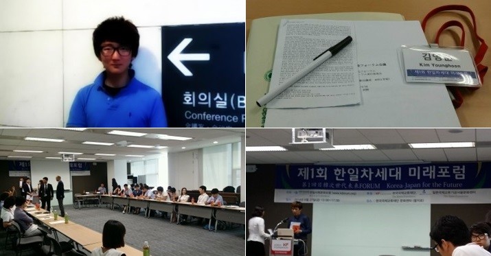 이웃나라 일본은 대학생이 되어 일어일문학과에 재학 중인 저에게 언제나 가깝게 접할 수 있고 관심 가지게 되는 나라였습니다. 그동안 일본어를 배우고 그들의 문화를 배우고 1년간 유학도 다녀오며 나름대로 많은 공부를 해왔다고 생각하고 있었습니다. 하지만 이번 제 1회 한일 차세대 미래 포럼에 참가한 것을 계기로 저는 그동안 잊고 있었던 소중하고 중요한 무언가를 느끼게 된 것 같습니다. 올해부터 처음으로 실행된 한일 차세대 포럼은 우리에게 스스로 많은 것을 고민하고 생각하게 했습니다. 이번 포럼의 토론자로 참가하기에 앞서 전달받은 "한일 청년들의 상호이해와 교류협력을 위해서 한일 모두가 함께 할 수 있는 새로운 것“이라는 주제를 보며 한동안 멍하니 참 많은 고민을 했습니다. 평소에 지내면서 조금만 관심을 가지고 귀를 기울였다면 충분히 여러 생각들을 해볼 수도 있었던 주제였지만 그러지 못했었기에 그만큼 더 생소하고 어렵게만 느껴졌습니다. 무관심 했던 스스로를 되돌아보고 부끄러움을 느끼면서도 한일교류를 위해 우리가 해낼 수 있는 일이 무엇일까 여러 한일 교류의 사례를 찾아보기도 하며 설레는 마음으로 토론을 기다렸습니다.