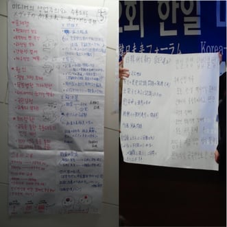 그리고 쉬는 시간을 가지고 저희가 기다리던! 두구두구두구두구! 전야제 때 얘기 나온 것으로 의견이 좁혀진 '한일 교류 촉진의 이익', '문화활동과 교육 교류 촉진 방법', 'SNS & 미디어 교류 촉진 방법' 에 대한 의견교환이 이루어졌습니다.