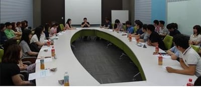 위의 곳(사진)에서 다양한 사람들과 입장 정리를 하고 그 다음 날 개최되는 포럼에 대한 설명을 듣게 되었고, 짧은 시간이었지만 얼굴도 익히고 친해지는 계기가 되었습니다.그리고 2014.6.27 1시에 한국교류재단 문화센터에서 제 1차 한일차세대 미래포럼이 개최되었습니다.