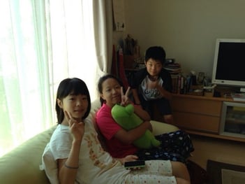 처음 만나는 가족인지라 너무 떨리고 긴장되었습니다. 하지만 주인 아저씨가 먼저 한국말로 "안녕하세요? 저는 00입니다. 이 쪽은 제 부인입니다. 이쪽은 제 딸이고 이쪽은 아들입니다."라며 가족 소개를 해 주었습니다. 준비된 차를 타고 그 집으로 갔습니다. 저는 일본말을 잘 할 줄 몰라서 어쩌지 못하고 있는데 9살 먹은 남자 아이가 영어로 쓴 편지를 제게 건넸습니다. 그 편지에는 "베드민트를 좋아합니다." 등 자기 소개가 간단히 써 있었습니다.