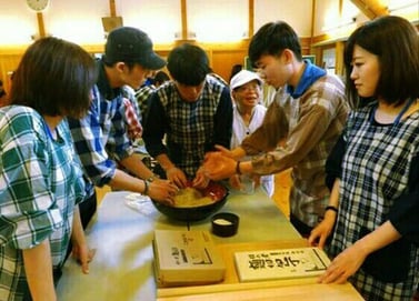 먼저 입국 첫 날 후쿠오카 국제공항에 도착하여 캠프에 참가하기전 하루 숙박할 쿠마모토 내의 숙소로 가는 길에 일본의 교통이나 도로상황 등을 통해 일본이 어떤 곳일까 설렘 및 호기심을 가졌었고 우리나라와는 사뭇 다른 모습을 보고 간접적으로나마 일본이라는 국가의 시민의식, 시스템 등을 이해 할 수 있었습니다. 이튿날 국제워크캠프가 열리는 국립아소청소년교류집으로 이동하기 위하여 국제 교류 회관에 모여서 출발할 때 참가학생 및 통역 및 현지 스텝 소개를 하였고, 이때는 약간 어색함과 긴장감이 공존했었습니다. 소개가 끝나고 모두 집합한 상태에서 캠프가 있는 곳으로 이동하였고 약 1시간 정도 걸려서 아소산 캠프에 도착하였습니다.