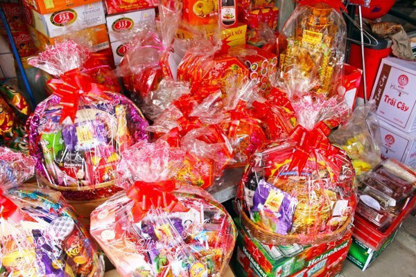 숙소 옆에 위치한 전통 시장이 생각보다 규모가 큰 편이라 많은 종류의 물품과 재료가 있었고 새해의 또 다른 필수품인 과자 선물 세트가 많았다. 같이 있던 현지 봉사자 친구에게 물어보니 베트남은 친척이나 가족들에게 새해 선물로 과자나 비스킷을 많이 선물한다고 한다. 과자 더미 속에서는 베트남 과자도 있었지만 한국 과자와 일본 과자가 많이 섞여있었다. 나중에 알고 보니 베트남에서는 한국과 일본과자를 많이 수입한다고 한다. 때로는 한국보다 더 다양한 종류의 과자가 있어 놀라기도 했다.