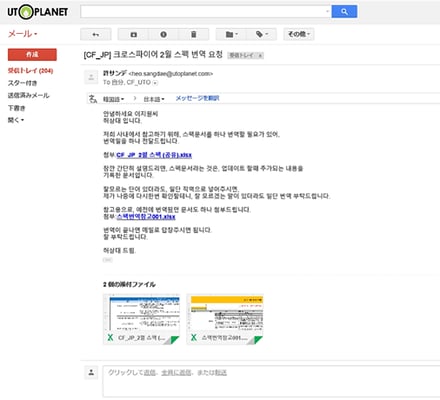 도쿄 중앙구에 위치한 Utoplanet 이라는 게임회사에 인턴으로써 근무하였습니다. 주로 FPS 게임서비스를 제공하고 운영 및 관리, 타 IP회사와 협력하여 콘텐츠사업을 진행하는 회사였습니다. 저는 주로 번역 업무를 담당으로 하여 한국의 게임개발회사에서 제공하는 업데이트 내용을 일본 내 게임서버에 적용할 때 필요한 문서번역, 일본어 홈페이지 번역제작, 스마트폰어플 사업에 필요한 자료수집 및 PPT작업, EMS업무 등을 수행하였습니다.