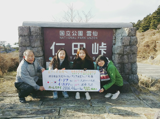 넷째날은 일행들과 흩어져 각자 홈스테이를 맡아주신 가족들을 만났습니다. 저는 와키자카 상께서 맡아주셨습니다. 저와 친구를 마중나온 와키자카상과 히로코상께서 무거운 짐 드는 것도 도와주시고 집으로 향하는 동안 한국에서 온 저희를 배려해서 한류나 한국에 대한 이야기를 먼저 꺼내며 한국에 대한 호감을 보여주셨습니다.일본인의 집은 드라마나 TV로만 대략적으로 봤지 직접 가보는 것은 처음이라 정말 궁금했습니다. 와키자카 상의 집은 정말 전형적인 일본형 주택이었습니다. 일본의 집은 한국과 달리 여닫이 문이 아닌 미닫이 문이 많았습니다. 요즘엔 한국에서도 찾아볼수 있긴하지만 일본에서는 흔히 볼 수 있는 2층주택이었습니다. 저희가 잘 다다미방에 짐을 놓고 와키자카상과 히로코상이 나가사키 관광을 시켜주셨는데 그날따라 바람이 많이불고 굉장히 추웠음에도 불구하고 두분 다 웃으면서 사무이데쇼?하고는 저희를 챙겨주셔서 죄송하기도 하고 감사할뿐이었습니다. 탁트인 바닷가 앞에서 온천수로 족욕을 하고 온천수가 나오는 운젠이라는 곳을 들렸습니다. 오바마라는 이름의 산에도 갔는데 일본이 섬나라이다보니 산이 굉장히 높아 제가 가봤던 한국의 산과는 비교가 안될만큼 경치가 멋졌습니다. 정말 구름과 가까운 느낌이 들었습니다. 그리고 인상적이었던 것은 와키자카상께서 한글로 저희를 환영하는 슬로건을 직접 써주셔서 관광지마다 저희가 추억을 남길 수 있도록 슬로건과 함께 다같이 사진을 찍을 시간을 마련해 주셨습니다. 저희를 생각해주시는 마음이 그런 것 하나하나에서 눈에 보였습니다. 집으로 돌아와 TV가 있는 거실에 갔는데 어릴적 만화에서나 봤던 코다츠가 있었습니다. 저희가 갔을땐 날씨가 무척 추워서 코다츠 속에 들어가서 만화 속처럼 귤을 먹기도 하고 다같이 둘러앉아 저녁식사를 했습니다. 어머니께서 만들어주신 나베는 정말 맛있었습니다♡ 한국의 샤브샤브와 비슷했는데 미소를 국물로 해서 그런지 구수했고 같이 준비해주신 초밥과 김밥도 맛있게먹었습니다! 저녁을 먹고 저희가 온다는 소식에 와카자카상의 이웃들이 집으로 오셔서 저희를 반겨주시고 이야기하는 시간을 가졌습니다. 저희또래의 분들도 오셨었는데 다같이 게임도 하고 서로 각자 나라의 노래도 부르며 서로 그 의미를 정확히 알지는 못하지만 모여있는 모두가 한마음이 된 듯 했습니다. 메구미상과 히로코상과는 라인 아이디를 주고 받아 한국에 와서도 연락을 할수 있어서 굉장히 좋았습니다.