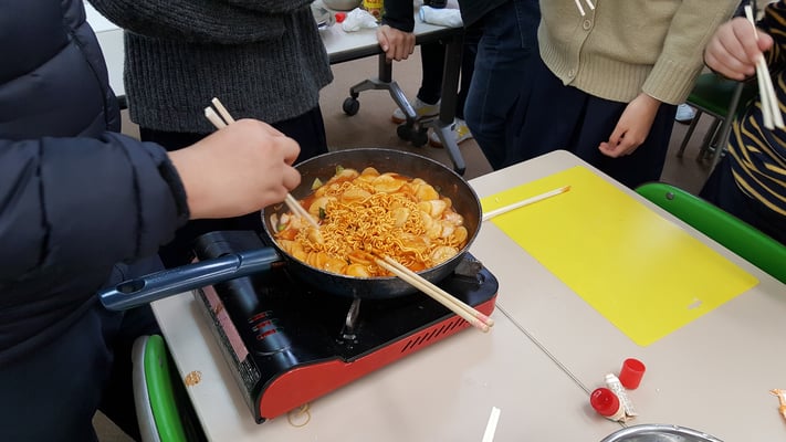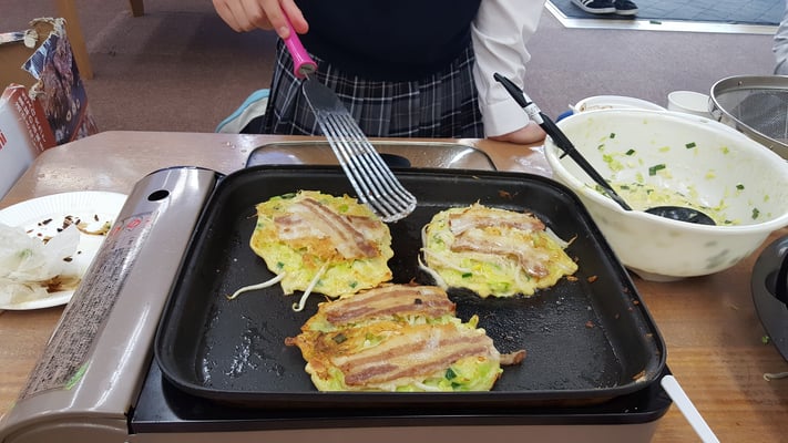 수업뿐만 아니라, 야외 활동이 있는 날에는 조별로 나누어서 활동하기도 하였습니다. 저희 조는 일본에서 유명한 오챠노미즈 대학교가 있는 오챠노미즈역에 하차한 다음, 미술 작품 전시회 관람을 하기도 하고, 역 근처에 있는 칸다묘진에 가서 하츠모우데(새해인사) 및 오미쿠지(운세쪽지)를 해 보기도 하였습니다. 때로는 점심시간을 이용하여 일본 음식을 만들어보기도 하였고, 한국 음식을 만들기도 하였습니다. 한국 음식으로는 떡볶이와 육개장을 만들었고, 일본 음식으로는 오코노미야키를 만들어보았습니다. 가게에서 사 먹으면 굉장히 비싼 음식이라서 접하기 힘들었었는데, 이번 기회를 통해 먹어 볼 수 있게 되어서 정말 좋았습니다. 그리고 음식 또한 그 나라의 문화 중 하나라고 생각하기 때문에 체험해보는 것만으로도 많은 것을 얻을 수 있었다고 생각하고, 만드는 과정을 통해 서로 진솔한 이야기도 나누어보면서 많은 생각을 할 수 있는 계기가 되었습니다.