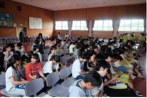 모든 외국인들(한국인,일본인 고교생, 대만인,중국인, 독일인)이 학교 같은곳에 모여, 오티를 합니다. 오티는 오직 일본어로만 1시간동안 진행됩니다. 약 1시간 동안이므로 일본인 동행리더에게 그걸 전부다 통째로 통역 부탁은 무리가 있었습니다. 이곳 주변은 산이라, 와이파이도, 인터넷도 잘 터지지 않았습니다.