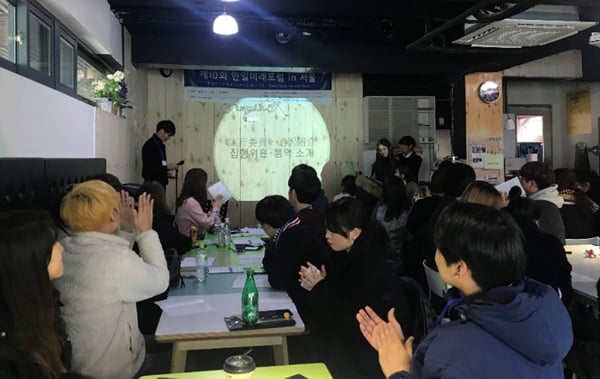 まず始めに、今回の第10 回の韓⽇未来フォーラムには島根で開かれた第9回に引き続き、2回⽬の参加であった。参加者では無く、通訳として参加したという事が前回との⼤きな違いである。第9 回のフォーラムに参加しながら、私も⽇韓の学⽣のコミュニケーションの架け橋になりたいと思い、通訳として参加することになった。今回私が所属したチームは、⽇韓未来アジア希望キャンプin ハノイであった。討論内容は⽇韓未来アジアキャンプで⾏う⽇本語・⽇本⽂化教室と韓国語・韓国⽂化教室の内容、スケジュールを組むというものであった。チームは通訳と実⾏委員を含め総5名で構成されており、⼈数が少なかったため話を進めるのに難航した。また、チーム内にハノイ訪問経験者がおらず、キャンプの概要もほぼ⽩紙状態であったため、さらに厳しい状況であった。現地での通訳の有無、提携先の学校や団体、対象学⽣なども全く決まっていなかったため、私たちは1 から全て作り上げる事にした。⽇韓の⽂化の違いや両国とベトナムの⽂化の違い、また、共通点を探しながら教室内容を考えて⾏った。今回調査をしながら驚いたことは、ベトナムの多くの学校で⽇本語教育が⾏われているという事であった。第⼆⾔語として⽇本語を学んでいる学⽣も少なくない。その理由はベトナムに進出する⽇系企業で就職をするためであった。⽇本と距離の近い韓国では⽇本との⽂化交流も多く、お互いの国を訪問する旅⾏者も多いため、⽇本語学習者も多く、⽇本語の普及率が⾼いというのは以前から知っていた。しかし、⽇本とはそれほど距離が近くない東南アジアにある国、ベトナムで⽇本語が第⼆外国語として普及されているというのが⾮常に興味深かった。フォーラムが終わって⽇本に戻り、さらに深く調べて⾒ると、⽇本語を第⼆外国語として学んでいる⽣徒もいるが、現状として⽇本語はハノイではあまり通じないそうだ。そのため⽇本語学習への熱と、⽇本語の普及率の低さという現状とのギャップを埋めるという視点から⾒ると、この⽇韓未来アジア希望キャンプはかなり⼤きな役割を果たすのではないかと思う。また、この⽇韓未来アジア希望キャンプin ハノイを通して恩恵を受けるのはベトナムの学⽣だけではない。教室を開いて、⾔語や⽂化を教える⽴場になる⽇本⼈、韓国⼈に対して与えられる影響も多い。国際化が進むにつれて、⽇韓交流だけでなく、他のアジアの国々も含めた多国間交流が重要視されてきている。世界には⽇本と韓国以外にも多くの国があるという事を忘れてはいけない。⽇本と韓国の関係を改善することだけに集中するのでは無く、⽇韓交流で得られた効果を他の国との交流にも広げるということが⼤切であると思う。韓⽇未来フォーラムに参加している学⽣は、少なくとも⽇本や韓国に対して興味を持ち参加するように思われるが、その思いを他の国にも向ける必要がある。⽇韓の問題を考えながらも、他国との関係改善にも私たちが努⼒していかなければならない。前回の第9 回⽇韓未来フォーラムは、⽇本と韓国の共通問題、⽇本と韓国が抱える問題である、⽇本軍慰安婦問題、領⼟問題、Mee too 運動、⼤学⽣活の4つのテーマがあった。その中で、⽇本でも韓国でもないベトナムという国での活動が⼤きなテーマになっている⽇韓アジア未来キャンプは、従来の韓⽇未来フォーラムに変化を与える事ができるのでは無いかと思った。これから⽇韓未来フォーラムのテーマが多様化していく事を期待している。フォーラムを作っていく通訳として参加しながら感じた点も多かった。まず、私が属したチームは韓国⼈が⼀⼈であり、⽇本語を理解する事ができたため、ほとんどの会話が⽇本語で進められた。そのため、通訳としてチームに貢献することは他のチームに⽐べて少なかったと思う。その点では、また機会があるならば通訳としての役割を、さらに発揮したいと思っている。前回のフォーラムと⽐較して、今回のフォーラムは⽇数が1 ⽇少なかった。また、チーム単位での活動時間が多かったため、他のチームと交流する機会が少なかったように思われる。参加者からもこのような意⾒を⽿にする事があった。その反⾯、チーム同⼠の仲は深まったと思う。フォーラムが終了してやく2週間が経った現在も、定期的に連絡を取り合っている⼈が多い。また、時間が少なかったにも関わらず、各チームの発表の完成度は⾼かった。だが、質疑応答での意⾒が少ないなど、改善点も多く⾒られた。そのような点で、チームを超えた参加者同⼠の交流と、発表に向けての討論のバランスを取る事は難しいと感じた。フォーラム全体を通して、韓⽇未来フォーラムは⽇本と韓国の学⽣が⽇常的でないテーマである、領⼟問題、⽇本軍慰安婦問題など、⽇韓交流のためには避けたくなるような話題が扱われる。そのような扱いにくいテーマについて、⽇韓両国の学⽣が⾃分たちの⾔葉で直接話し
