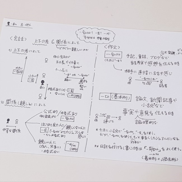 그래서 첫 수업 후에 제 나름대로 어떤 경우에 어떤 말투를 쓰는지 정리해서 알려드렸습니다.