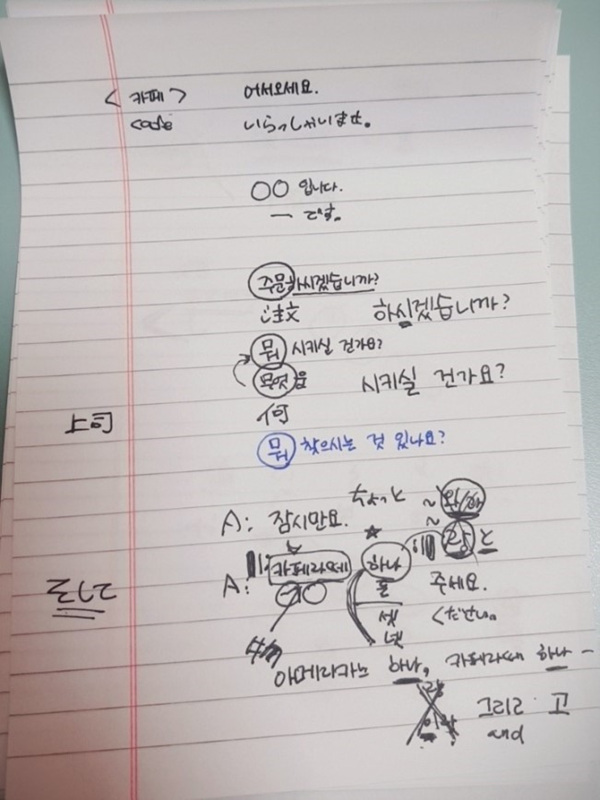 - 중간중간 모르는 단어나 새로운 표현들을 나중에 복습할 수 있게 학생이나 제 노트에 적었습니다.