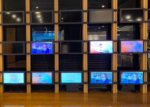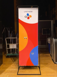 入ってまず目に入るのが、リアルタイムで放送されている番組を映し出した壁だ。CJにはたくさんのチャンネルがあることが見てわかる。ロビーにはカフェやスタジオの入口、そしてCJ ENMが運営する韓国のケーブルテレビであるMnetにより放送されている「MUSIC BANK」の観覧の待ち合わせ場所などがあった。