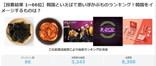 この結果からわかることは、日本の人々は韓国のエンタメを好み大衆的な認知度も高いということだ。