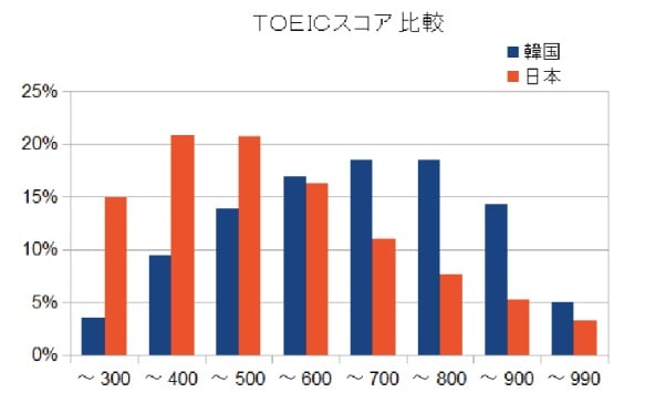 ワーキングホリデーで海外で働いている友人や知人がいるのかという質問では、10 名がいると答えた。アメリカと日本で働いているという人が多いとのことで、韓国人は日本人に比べて英語が上手な人が多く、日本語はできないという意見が多かった。なので、むしろ日本にワーキングホリデーに行って日本語を学びたいという声もあった。グラフを見て分かる通り、日本と韓国では大きな点数の差が見られる。