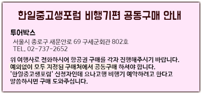 ※ 항공권은 공동구매이며 반드시 '투어박스'를 통해 예매해야 합니다.