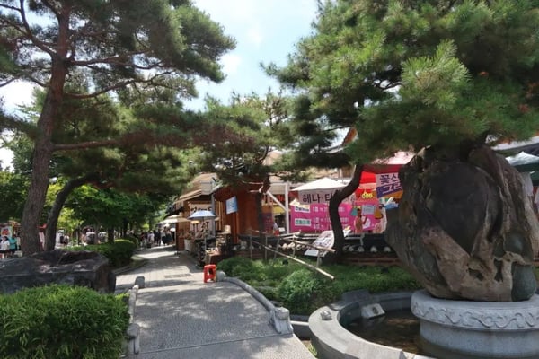 Toujours dans le village, vous avez en plein milieu un joli sanctuaire qui ressemble à certains sanctuaires de Séoul, Le Sanctuaire Gyoenggijeon. L’entrée coûte 1000 wons par personne ( environ 1 euro).