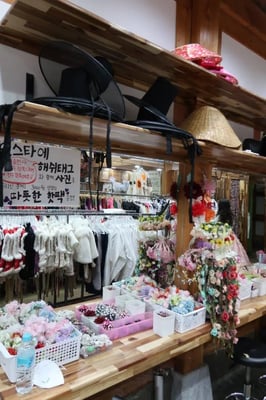 Voici des personnes avec les tenues traditionnelles des coréens, vous risqueriez d’en croiser beaucoup, vous pouvez vous même en mettre! Il suffit de les louer, il ya des boutiques de location à peu près tous les 2 mètres donc n’hesitez pas d’en louer pour vous amuser :) Cela ne coûte que 10,000 wons pour 2 heures soit 8 euros. Il y en a pour tous les goûts! De plus, si vous ajoutez 3000 wons ( environ 3 euros), pour les filles il est possible de faire une belle coiffure avec des fleurs sur les cheveux.