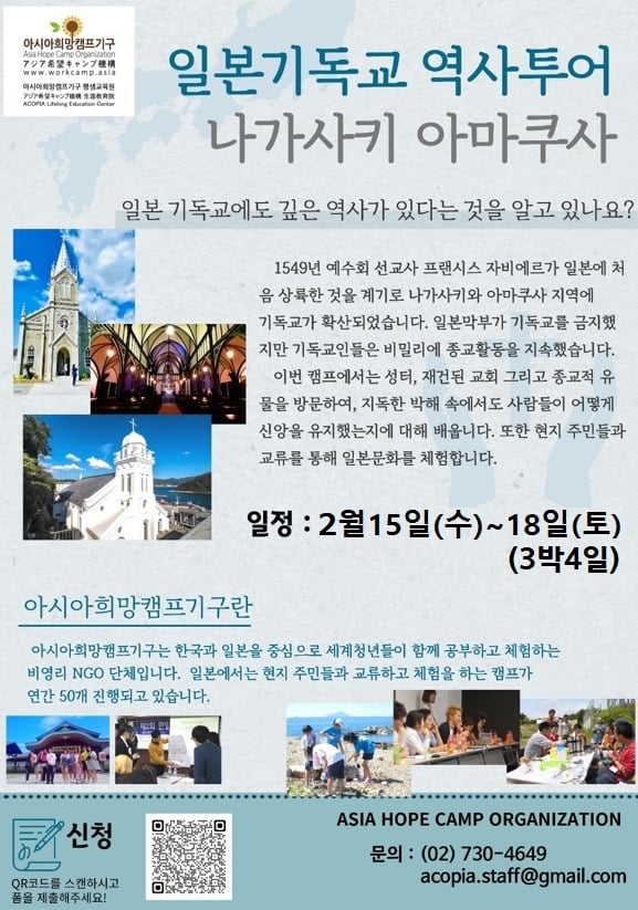 ◇ 희망캠프의 '일본성지 역사투어' 프로그램은 3박4일 89만원