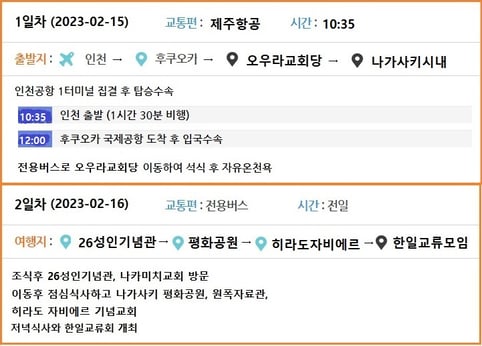 ◇ 카톨릭신문사투어의 '일본성지순례' 상품은 3박4일 125만원