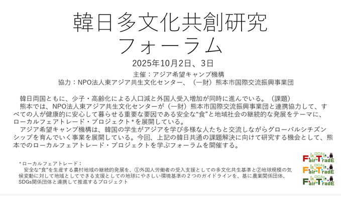 2025年8月23日に開催された日韓首脳会談では、李在明大統領と日本の首相が6つの共同合意事項の一つとして、「少子高齢化、人口減少、地方消滅、首都圏集中など社会構造的課題への共同対応」を掲げ、そのキーワードがまさに「多文化共生」であった。