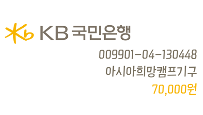 규칙준수보증금 입금계좌 : 국민은행 009901-04-130448 아시아희망캠프기구