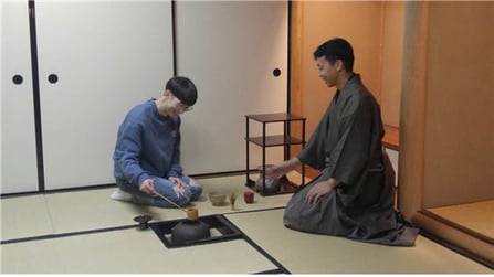 그것은 일본의 개그 같은 것으로 여러명이 한줄로 나란히 방석 위에 앉아 이야기를 하고 누군가 딴지를 걸고 관객들을 웃기게 하는 재미있는 연극이었습니다.