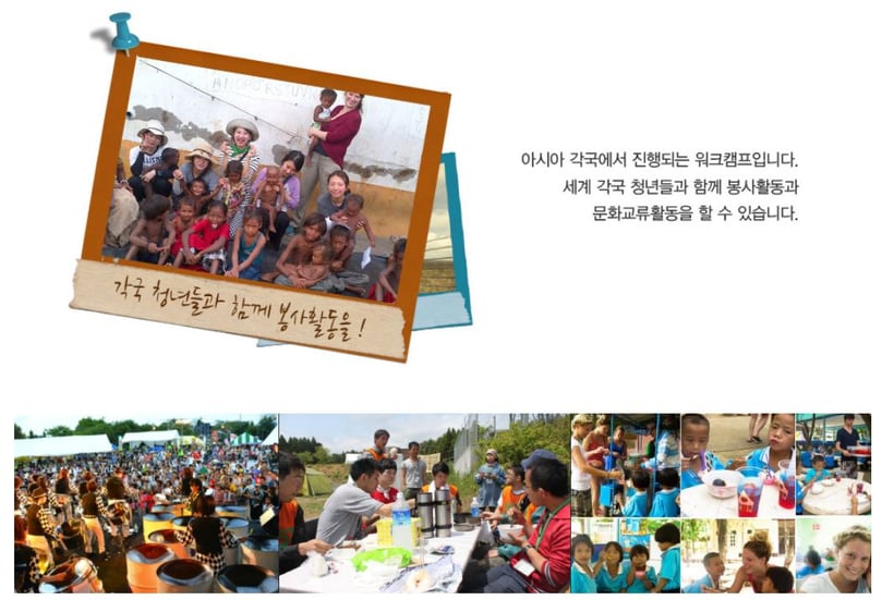 국제워크캠프가 시작된 것은 1차세계대전 직후 폐허가 됐던 약 100년전의 유럽(프랑스)이지만, 지금 우리의 봉사를 필요로 하는 곳은 유럽이 아니고 아시아입니다.